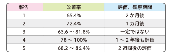 以下の報告によるとそれぞれ63.6~100%までの効果はあります。鼻炎の症状の中でも特に鼻閉「鼻づまり」に効果的と考えられます。